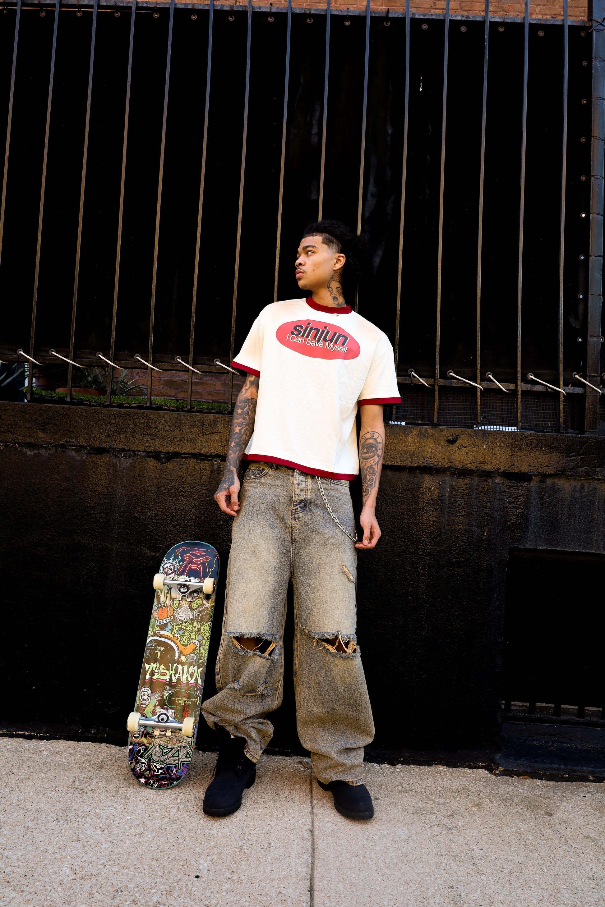 Knee distressing on both pant legs